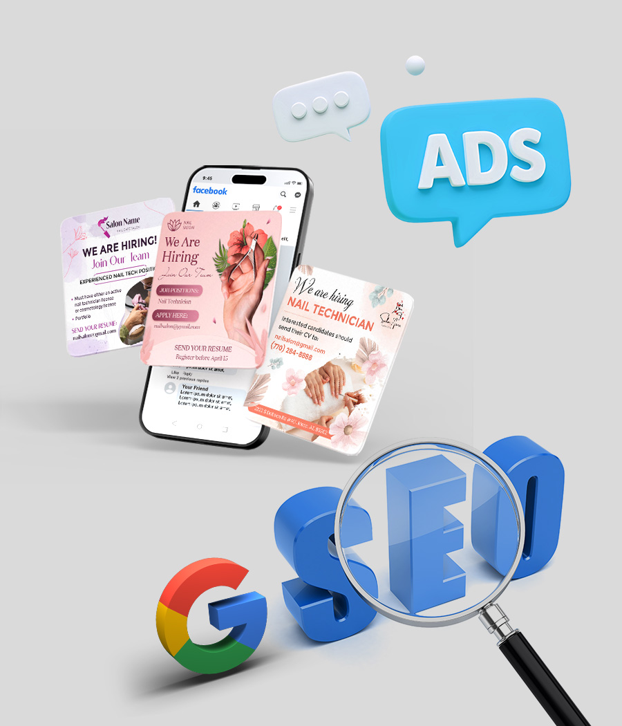 This service provides a complete strategy to elevate your nail salon’s online visibility, draw in prospective clients, and drive increased revenue. It includes optimizing your website and Google My Business to achieve prominent placement in Google search results, as well as executing paid Google Ads campaigns to ensure your salon appears at the top when users search for relevant services.
